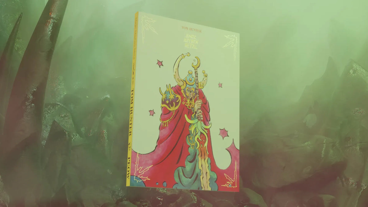 A big BIG ARTBOOK with the work of Tom Hunter a.k.a goblintom if you follow him on IG. It's 205 x 295mm (for reference, it's probably bigger than your whole face), 140 full-color pages of exactly what the title says; Magic, Metal, Mayhem (and also, heaps of muscles). The book also has an in-depth commentary/interview track throughout.