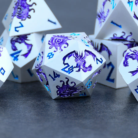 Our metal dice sets are all cast from zinc alloy metal to ensure better-balanced rolls. This set is perfect for any RPG and will be sure to impress at your upcoming session! Every set comes with its own metal dice tin for easy storage and a winning presentation.